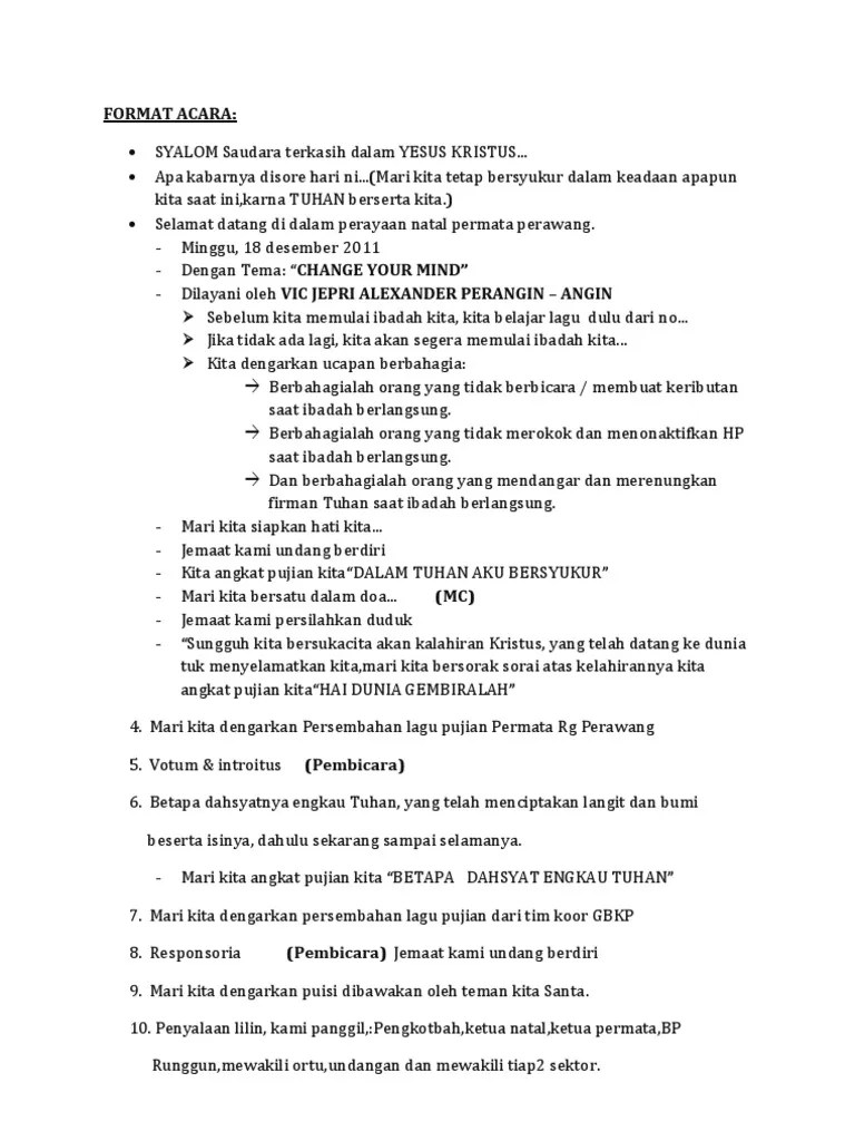 Doc tertib acara perayaan natal . Kebaktin pembukaan ibabai moderamen jenari iumputi kata sambuten. Contoh kata sambutan singkat ketua panitia natal zona ilmu 3. 02 september 2010 rapat nusun panitia natal moria klasis i rumah sekretaris. Panitia natal mamre sinodal pe ikut hadir ibas rppl enda eme ketua umum .